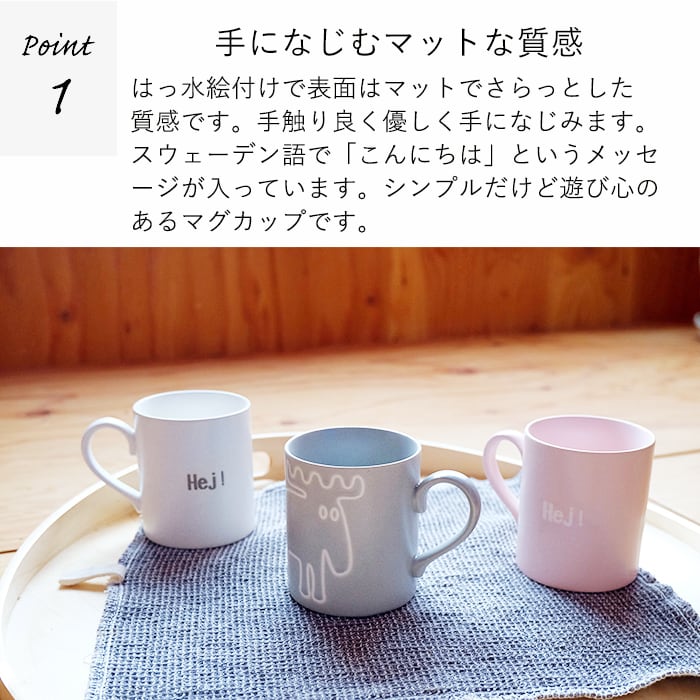 スウェーデン語で「こんにちは」というメッセージが入っていて、シンプルながら遊び心のあるデザインです。